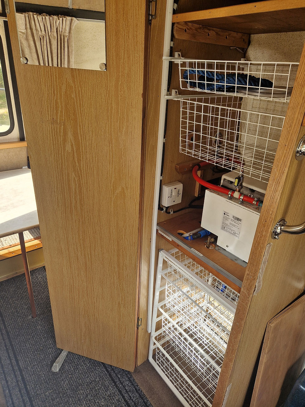 in one of the external lockers in the stern cockpit. The heater is a current design (fitted 2016),